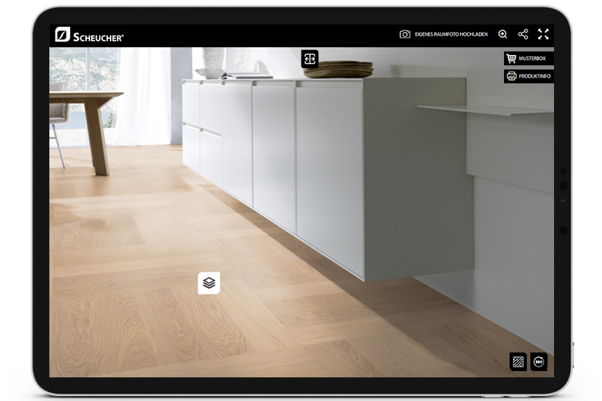 Cube parquet is available in a variety of wood types and colors. Use our Parquet-Finder to get to know the whole range and at the same time install your favorite cube parquet virtually in your home. Simply upload your own room photo!
