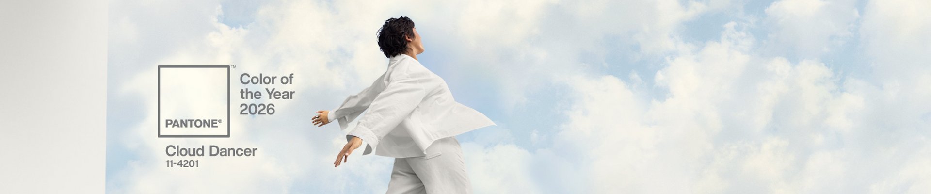 Cloud Dancer ist ein neutraler, heller Weißton mit leicht gräulichem Unterton. Dadurch wirkt die Farbe: